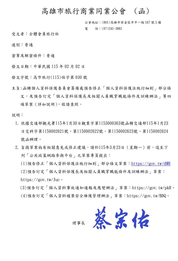 © 2025 高雄市旅行商業同業公會 版權所有