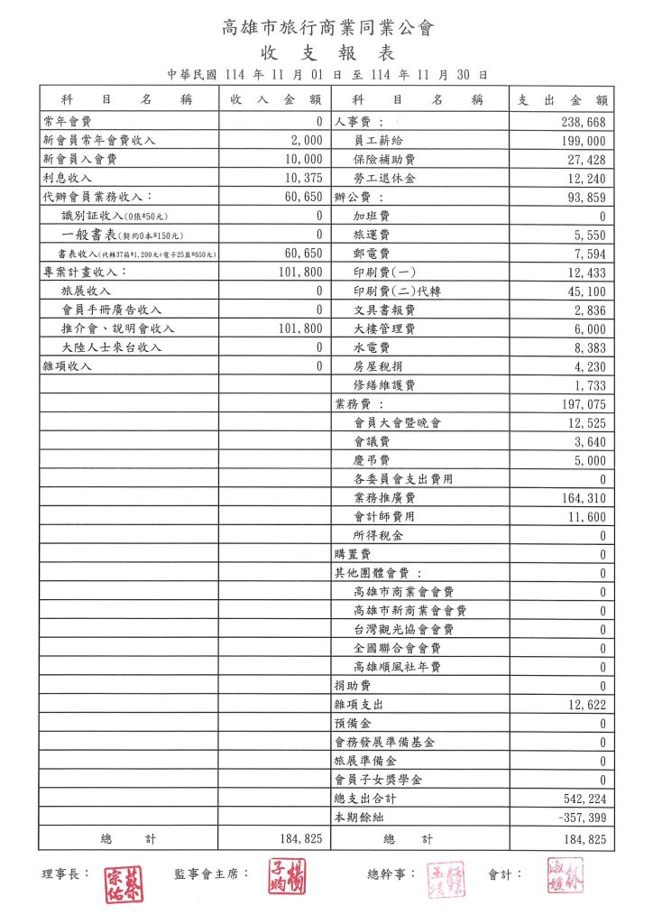 114年11月收支報表